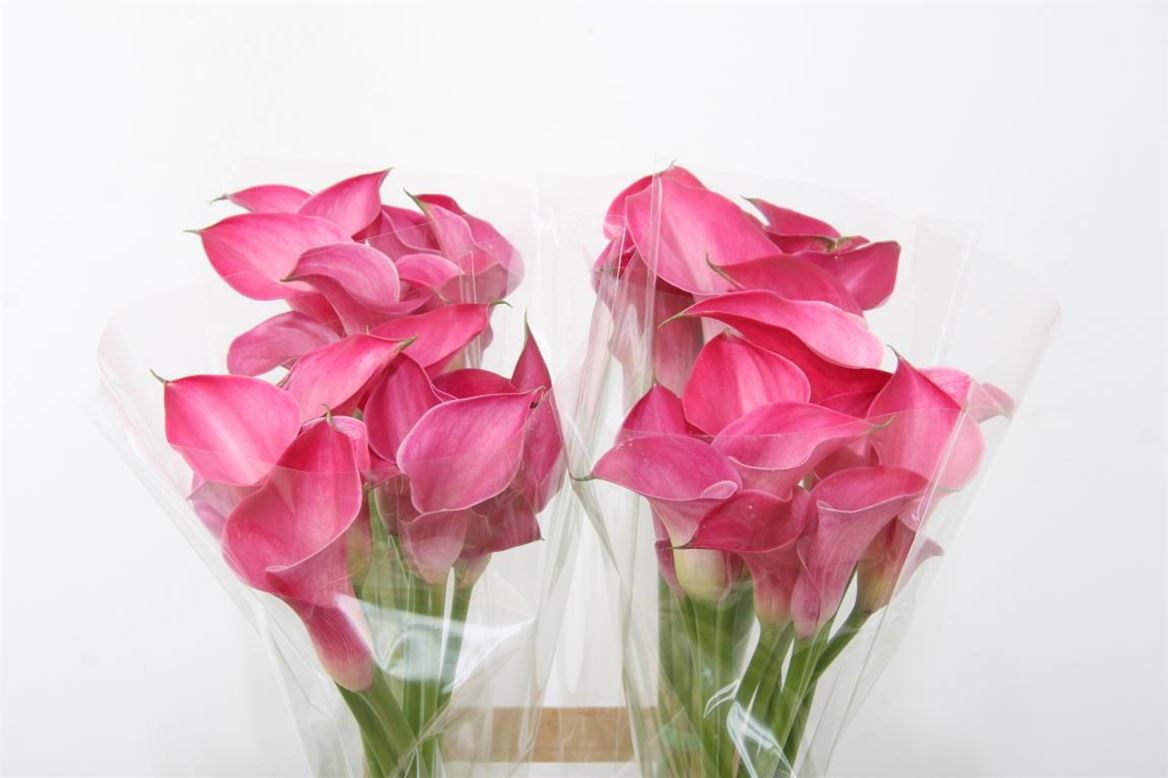 Calla Lillies are available in black, cerise, pink, pink blush, violet, white, and yellow. They have 10 stems per outer and are 60 cm in length